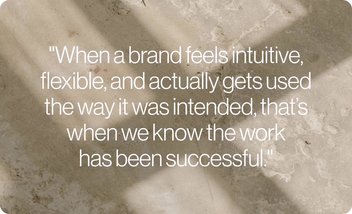 Beyond that, we look at ease of use and real implementation: how naturally the brand shows up across their day-to-day touch points. When a brand feels intuitive, flexible, and actually gets used the way it was intended, that’s when we know the work has been successful.