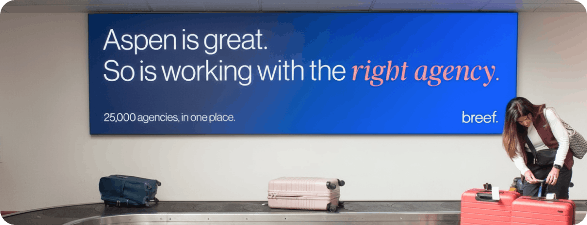 Breef in the wild: As leading marketers were welcomed to Aspen, CO for the Forbes CMO Summit — Breef was on the ground as they arrived (and departed). Check out our OOH activation that reminded marketers: there's a simpler way to find the right agency.